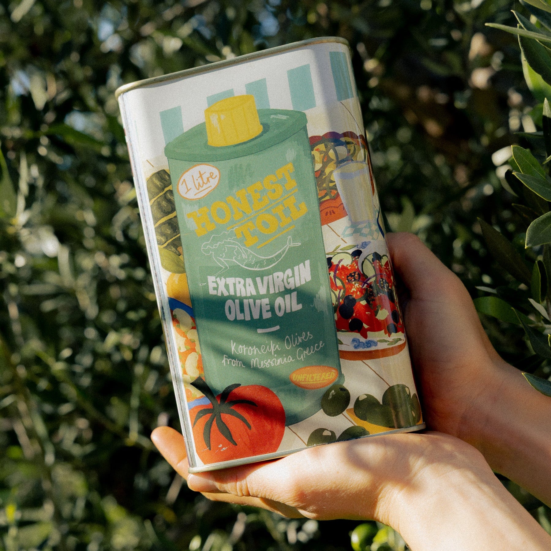 Bottled within the brilliant artwork of Zena Kay - this illustrated 1 litre can depicts our favourite Greek dishes.